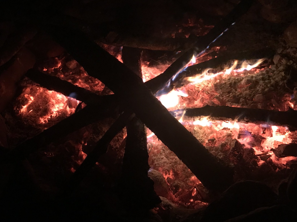 Fire needs tending. Movement of logs. Choice of little sticks, small branches, and medium logs. Fire needs a bit of poking here and there to bring energy and fresh burn. Fire needs a little breath, space, and wind. A fire, like a river of water, is never the same twice.