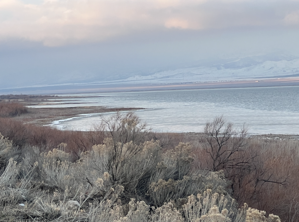 The South Shore of Utah Lake is another place I go when I seek learning. It is mostly orchard (peach and apple trees) and ranch land (some cattle, horses) with a few sparse homes. A shoreline road follows the curves and bends of the lake. I often see Osprey, Bald Eagle (the only place I’ve seen them in Utah), and many Sea Gulls. Sometimes Deer. I go for the spaciousness and a different kind of quiet to open my heart.