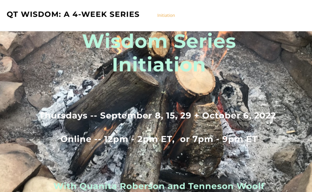 Another is our next iteration of a Wisdom Series. This is four parts, also online. Each session is 2 hours. The overarching theme of this is Initiation. We hold that integration is a key skill. Our weekly themes are: 1) Elders, Guides; 2) Surrender; 3) Spirit Walk; 4) Earth Walk. As above, our intent is wisdom and soulfulness. In the heart and in the belly. September 8, 15, 29 (skip 22nd) and October 6 — two time choices available.