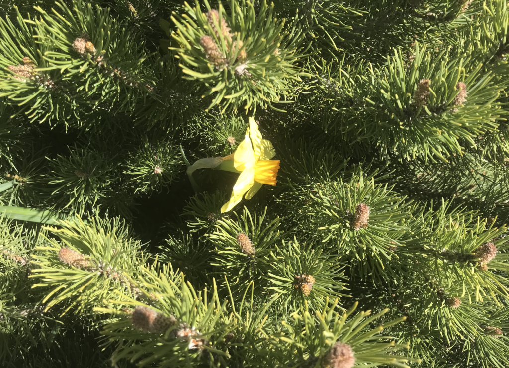Each year I’m particularly wowed by this daffodil. Rather than being shut down, it grows through the bush. It finds the sunshine it needs. It reaches for the open space. And flowers.