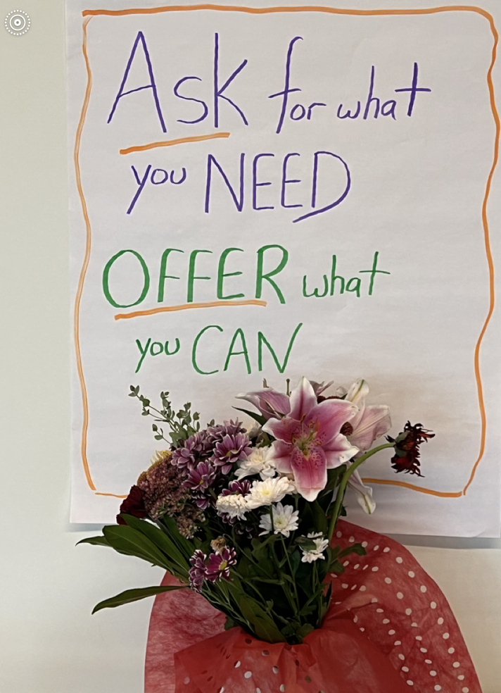 It’s such basic guidance. Yet, I’ve been learning layers of it now for 25 years. And yesterday, in Leading at MacEwan, I loved the way it looked on the wall next to this bouquet of flowers.