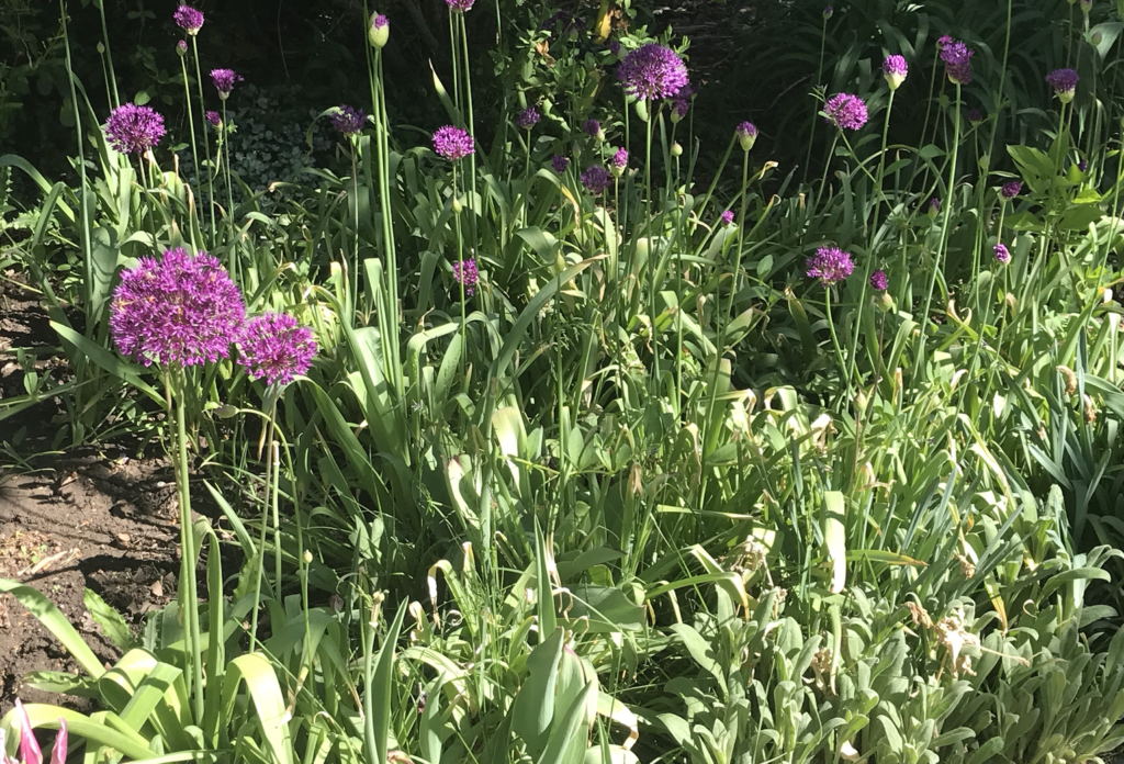 The Allium bloom abundantly this time of year where I live. Purple umbelled flowers on top of tall-standing stems. Each year there are more.