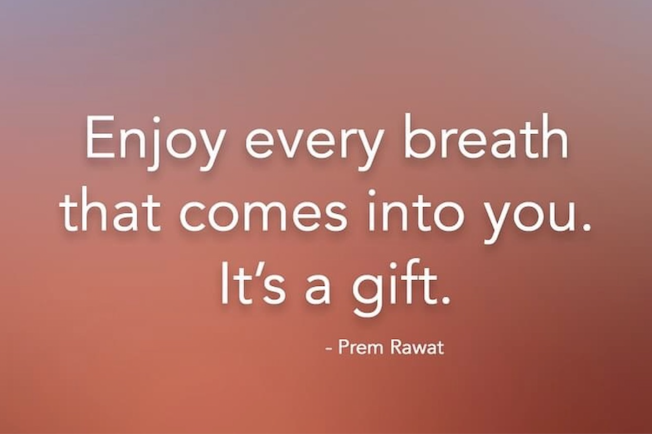 Thx Toke Moeller for posting this Prem Rawat quote earlier this week, “Enjoy every breath that comes into you. It’s a gift.”