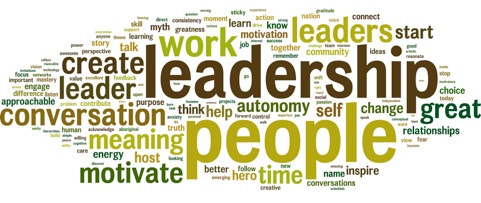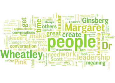 Appreciating this Wordle (www.worldle.net) created by Jean-Francios Hivon, from Leadership Conference 2011. Wordle lets you enter text (in this case, tweets received, which it then uses to create an image showing frequency of word use. The larger the word, the more it was used in the whole of the tweets.