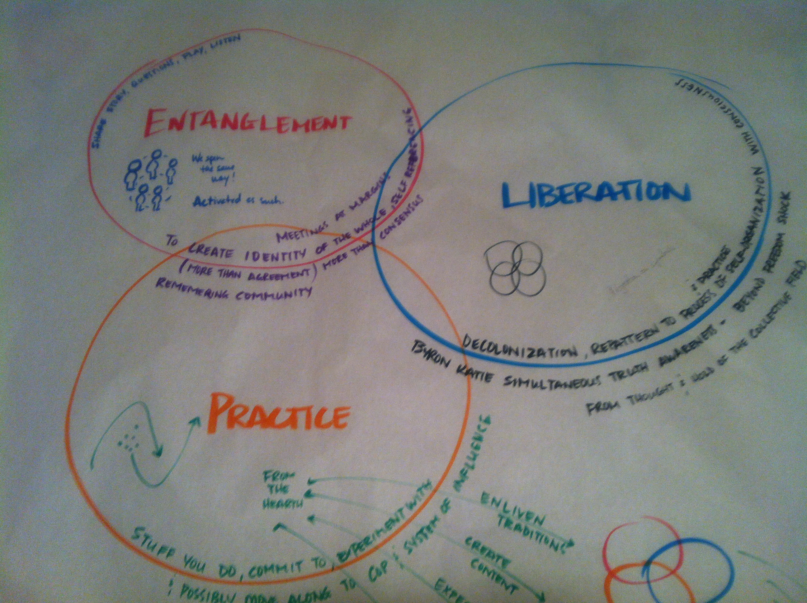Practice here is a reference to what we commit to do from such entanglement and liberation. Tasks. Experiments. Learning commitments. I’ve heard a fair amount of criticism about participative process, stating that it doesn’t lead to enough action. This practice is the action part. There is a difference in what we choose to do with each other when it is assigned compared to emerging from experiences of entanglement and liberation. The former can feel like assignment, void of real commitment and passion. The latter can feel like ease, synergy.