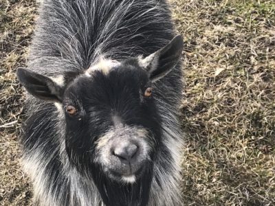 Along Lakeview there are a few farms, holding up the rural part of the meeting. One of those has goats, that seem quite ready to have little goats with this arrival of Spring. I took this goat’s picture this morning, who came near me at the fence.