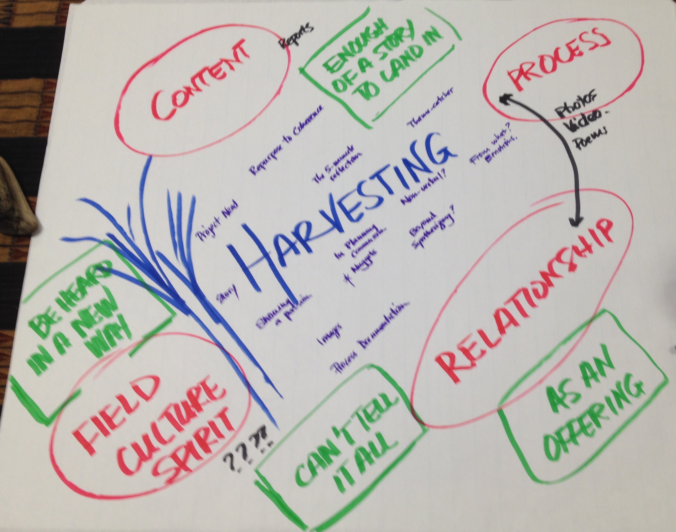 At the recent Art of Hosting event in Olympia, Washington, one of the teams I coached was those interested in harvesting. Over the course of three days, a group of about ten of us gathered four times to explore, define, discuss, imagine, and offer several aspects of harvesting.