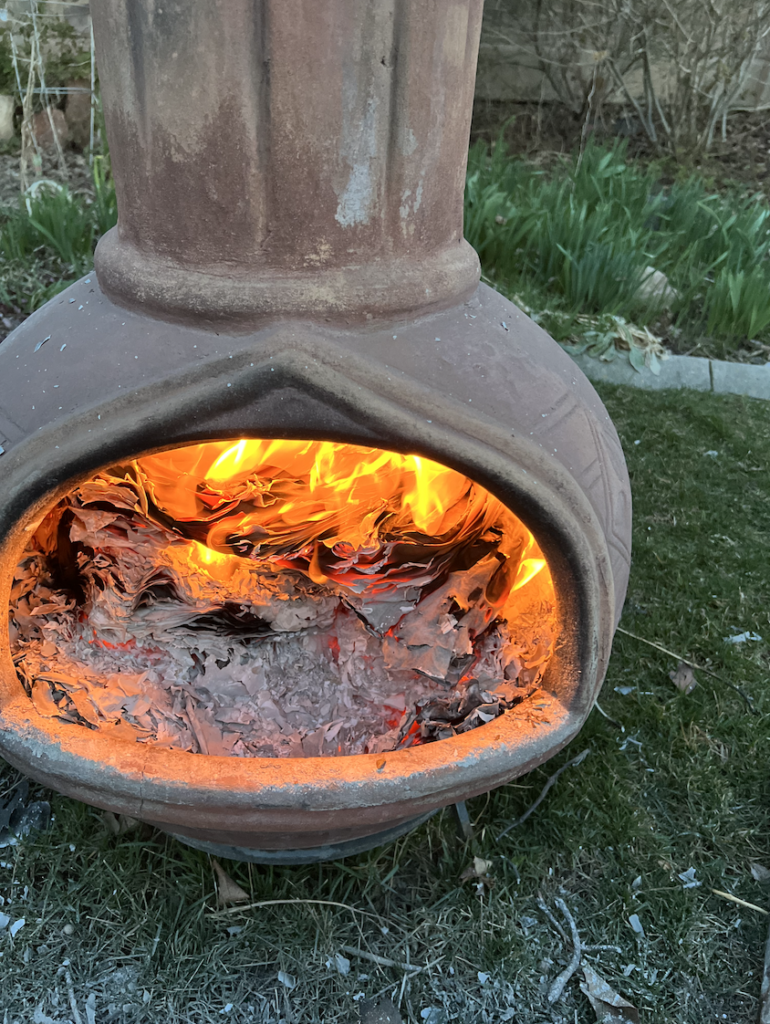 Center — Chiminea in my back yard. Fire is everything from ceremonial to simple joy for me. Fire speaks with a voice of letting go. With a voice of celebration. With a voice of calm. With a voice of thorough intensity. Welcome the burn that is closer in.