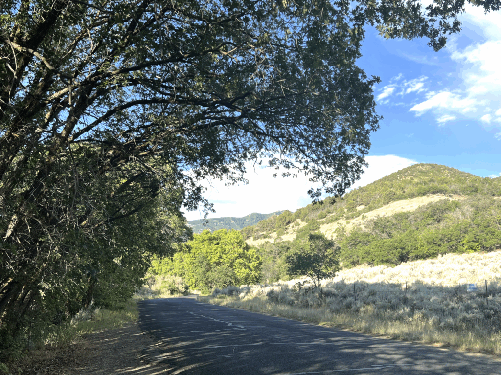 Looks like the pictures above. All on a paved road. Total climb is about 1,000 feet. An hour to get there. What joy. Breath. And enough challenge to be a challenge.