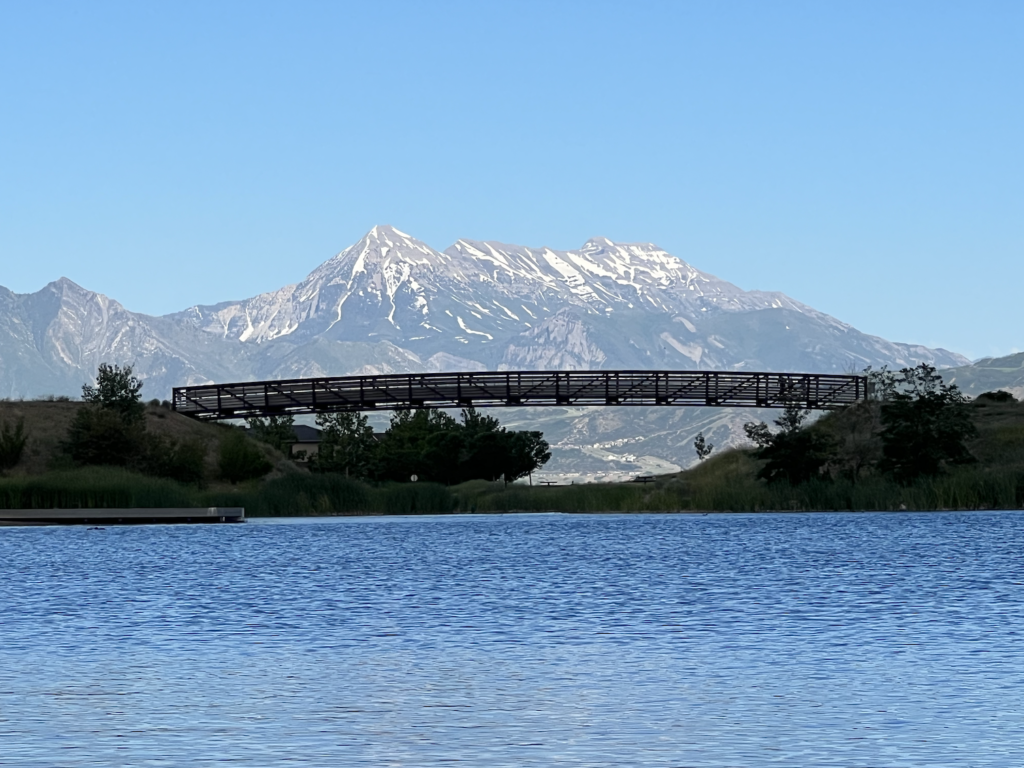 That’s a pedestrian bridge that connects mainland to island near Oquirrh Lake. Well, bridges matter, don’t they.