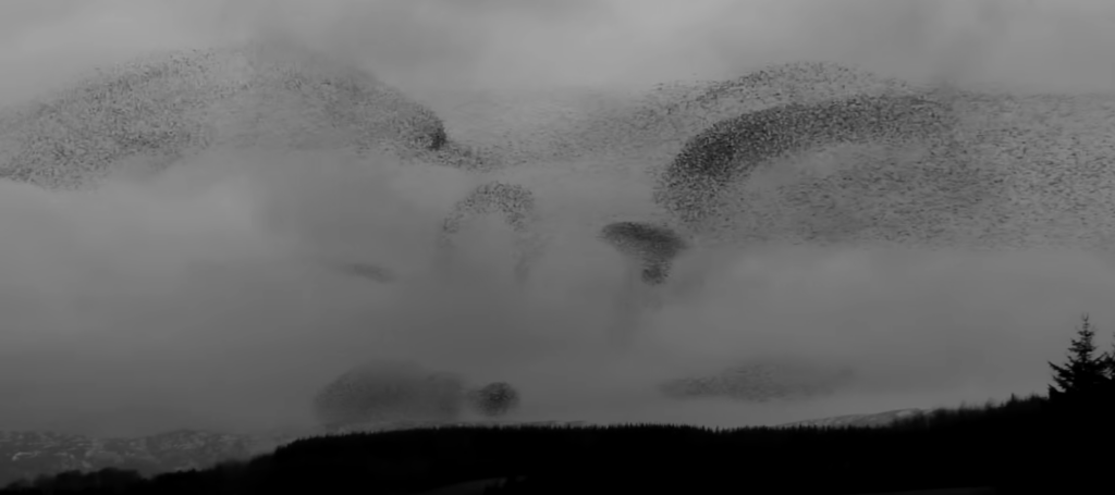The above image is of Starlings. Flocking. Moving with fluidity. They are a murmuration.