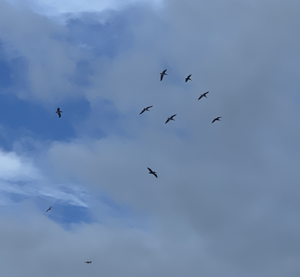 These Pelicans were gliding near the winter beach that Dana and I called home for a week over Christmas. It was a treat to watch them move about in the wind. And to stay seemingly still too.