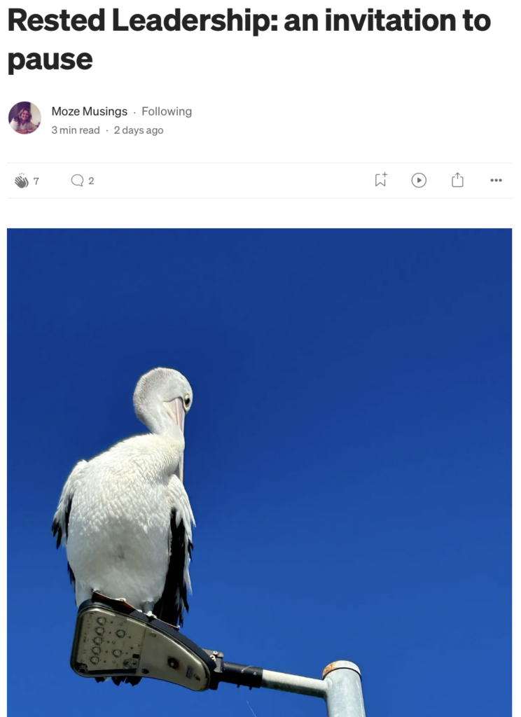 Her writing often moves me. Recently, on “Rested Leadership.” As Moze says…,