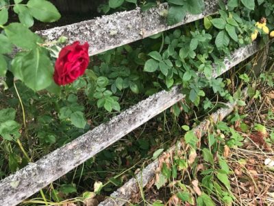 I love the way this rose looks, having climbed 3-4 feet, and now hanging over this top rail of wooden and weathered fence. It’s beauty, dare I say, its moment of offered friendship, also animates attentiveness.