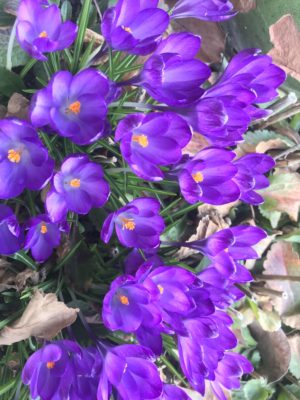 Each year at this time, I marvel at the first sight of Crocus. This photo above is from the weekend, near my front door — while other plants remain a few steps behind waking to spring, the Crocus burst forward with intoxicating purple. I marvel at the delicate flower that seems to act as a bold scout, the first to arrive, to signal to the others, it’s OK to start growing and blooming. Where I live, Crocuses are brave bad-asses of the flowering bulb world.