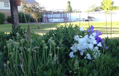 I just arrived to Utah, home, for a stretch of what will be 18 days. Greeted by these flowers growing in my garden, that had not blossomed when I last left, and tomato cages ready to be put to work. This period of time “at home” is noticeable to me for its duration. Eighteen days feels spacious and huge. Enough time to do laundry more than once! Enough time to spend an evening with friends.