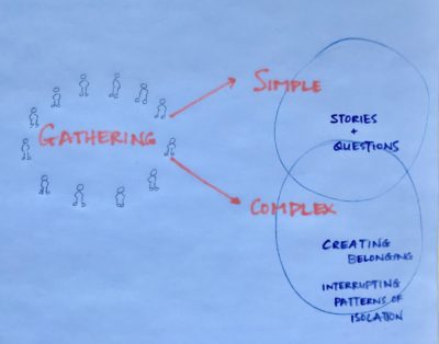 Circle also remains for me the most implicit agreement of how I like to live with people. Again, most simple and powerful. Again, to add to the richness of connection, turned to one another. Again, to be smart, thoughtful, kind, innovative. And to be, well, momentarily webbed in more blatant wholeness.