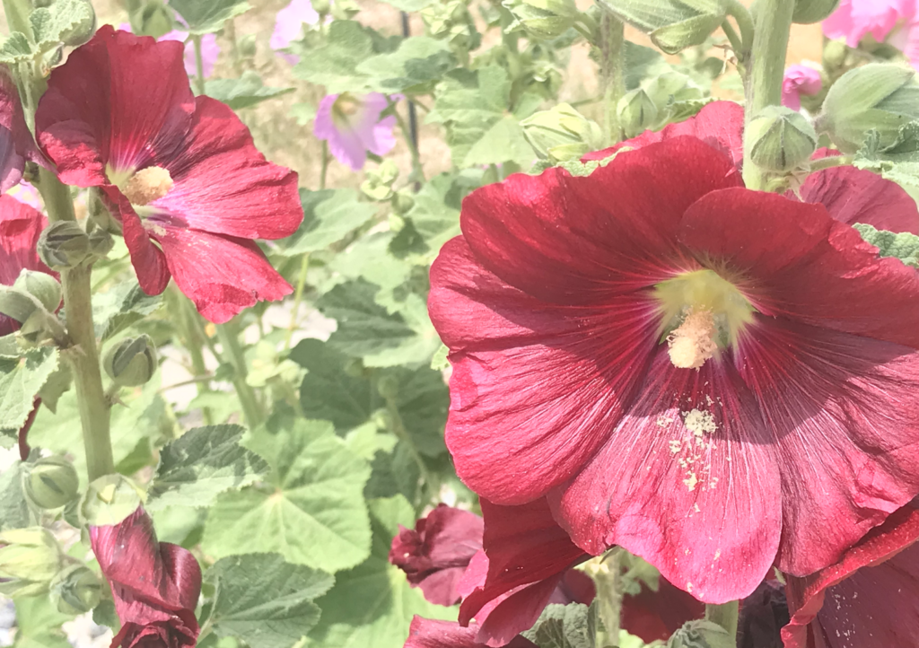 These Hollyhocks are from a recent walk in my neighborhood. I so enjoyed their beauty. Their “true to self” quality (or the “true to self” story that I enjoyed making up about them).