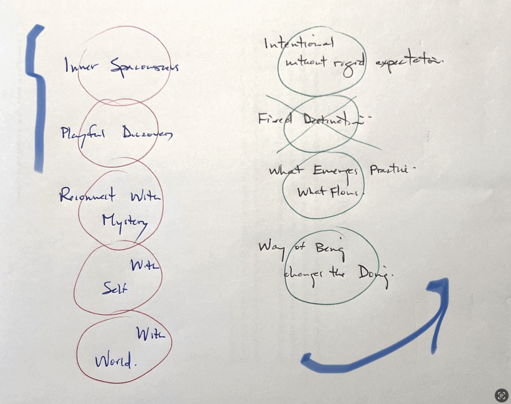 - more of a practice of being with what emerges and with what flows